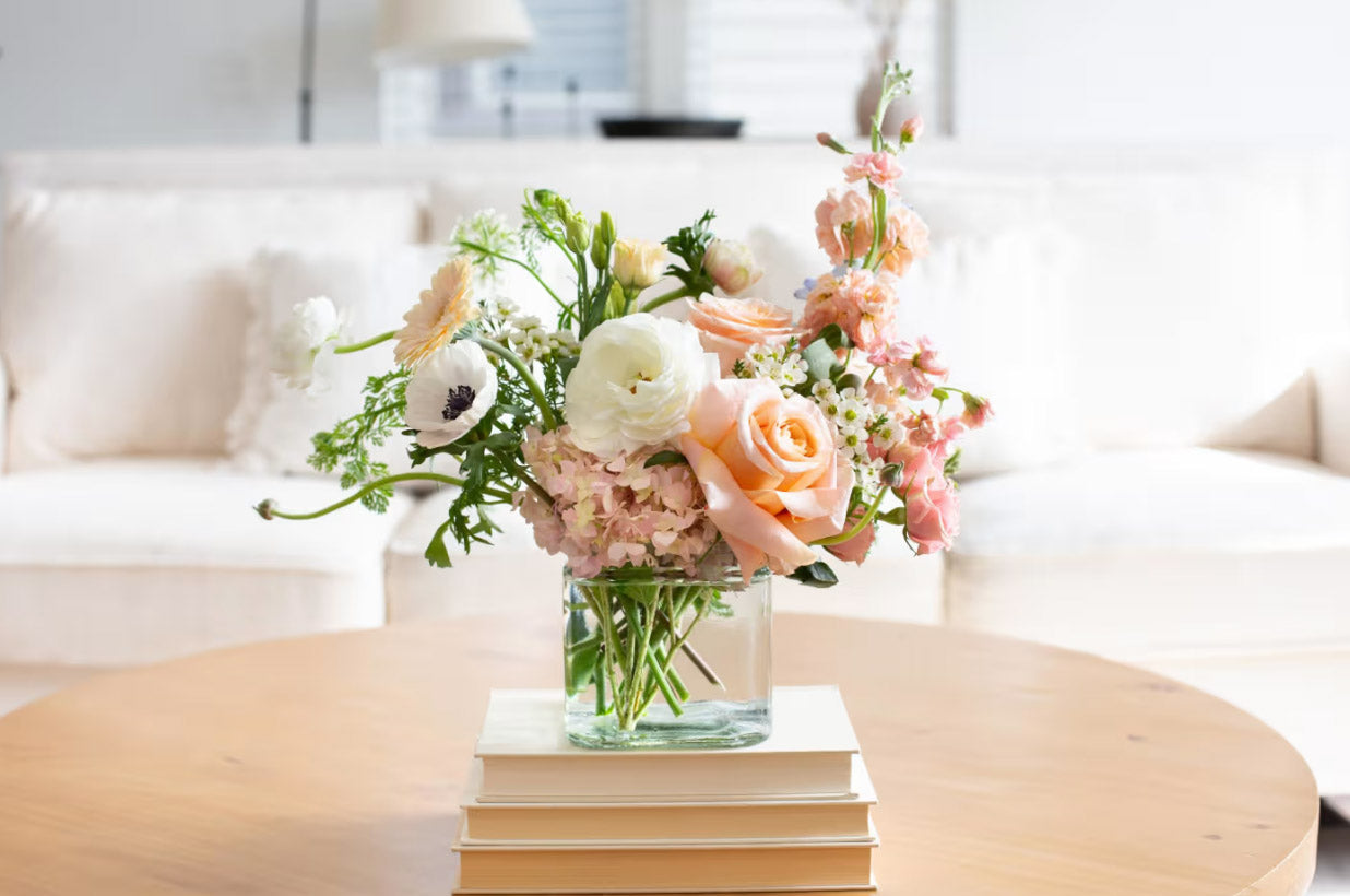 This arrangement features premium seasonal blooms such as garden roses, lisianthus, spray roses, and peonies—paired with delicate textural accents and designed with loose, romantic movement. Each piece is thoughtfully arranged by our DeLand-based floral designers.